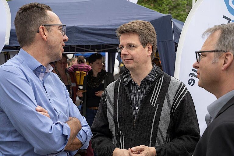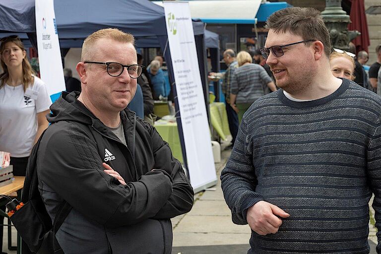 Den ganzen Nachmittag lang - zumindest in der regenfreien Zeit - besuchten viele Interessierte den proviel-Stand und kamen mit Mitarbeitern und Fachkräften ins Gespräch. Auch mit den Kollegen von den anderen Ständen gab es einen intensiven Austausch.