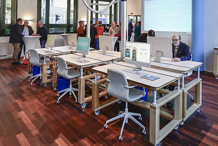 - Allen Wuppertalern steht das PIKSL Labor als Begegnungsort rund um digitale Themen offen, z.B. in Form von kostenfreier Nutzung des Internets, niederschwelligen, offenen Beratungssprechstunden oder einem vielseitigen Kursangebot. Gleichzeitig erleben sie gelingende Inklusion.