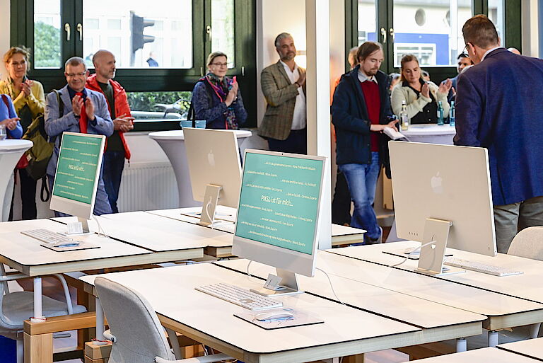 Das PIKSL Labor hat dienstags und donnerstags von 14 bis 18 Uhr sowie mittwochs von 9 bis 13 Uhr geöffnet. Interessierte und Neugierige können einfach ohne Anmeldung vorbeikommen.