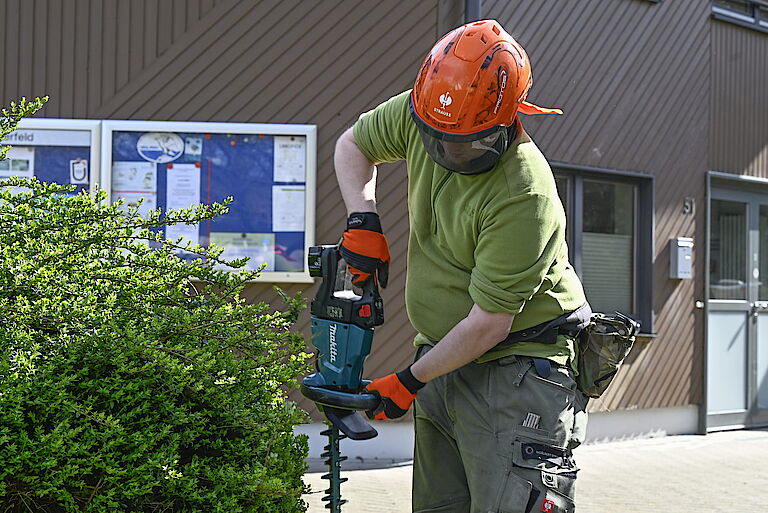 Gleichzeitig konnten die Teilnehmenden auch ausprobieren, wie ihnen die körperliche Arbeit an der frischen Luft gefällt. Denn auch dieses Jahr wieder stellt proviel ein Team, das sich um die Grünanlagen des Freibads Eckbusch kümmert. Mitte April soll die Aktion starten, rund ein Dutzend Mitarbeitende von proviel hat Interesse an diesem Außenarbeitsplatz. Die beiden Tage in Langerfeld boten einen guten Eindruck, was sie dort erwartet.