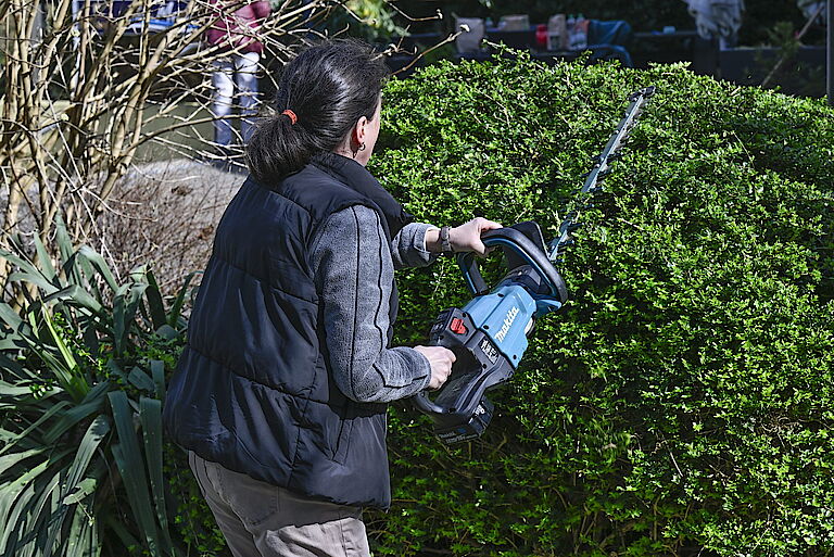 „Ich arbeite gerne draußen und freue mich schon sehr auf die Freibad-Arbeit im Sommer“, sagt etwa Jörg Neuhoff. Nadine Haustein hat schon die vergangene Saison im Freibad gearbeitet und ist begeistert: „Das war total toll!“ Das Aufgabengebiet hat sie so stark motiviert, dass sie auch privat für den Rettungsschwimmer trainiert. Die Regenschauer vom Vormittag konnten sie bei der Gartenarbeit nicht stören. „Das sind wir aus dem Freibad gewöhnt.“ Gut, dass proviel lange Regencapes zur Verfügung stellt, damit der Oberkörper trocken bleibt.