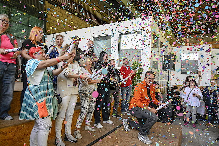 Hier eine Umarmung, da eine strahlende Begrüßung, dort gemeinsames Lachen: Die provieler genossen es, beim großen Sommerfest in der Alten Glaserei an der Nordbahntrasse alte Bekannte wiederzusehen, auch von den anderen Standorten. Diesmal wurde ein besonderes Jubiläum gefeiert: proviel wurde vor 30 Jahren gegründet. „proviel war die erste Werkstatt für Menschen mit psychischen Erkrankungen im Bezirk des Landschaftsverband Rheinland“, erzählte Geschäftsführer Christoph Nieder. 1994 hatte die Werkstatt mit 35 Menschen begonnen, heute hat proviel rund 750 Mitarbeitende plus weitere Menschen in der Maßnahme Train2be beim Mutterverein forum.