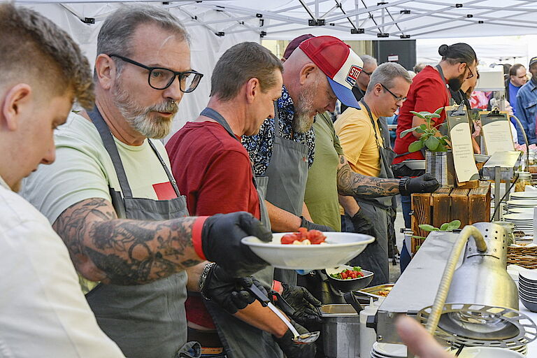 Beim Essen - serviert von der Culinaria mit der proviel auch im Okavango zusammenarbeitet - gab es eine große Auswahl von Bratwürstchen mit Brötchen oder Kartoffelsalat über Nudeln in Käsesauce und Pita mit Rindfleischsteak bis hin zu Flammlachs mit Drillingen und Salat. „Der gegrillte Lachs schmeckt super“, sagte Sevge Krayl fröhlich, die gemütlich mit Kolleginnen am Tisch saß. Als Dessert lockten Kaffee und Kuchen, Eis vom Eiswagen sowie bunte Cocktails.