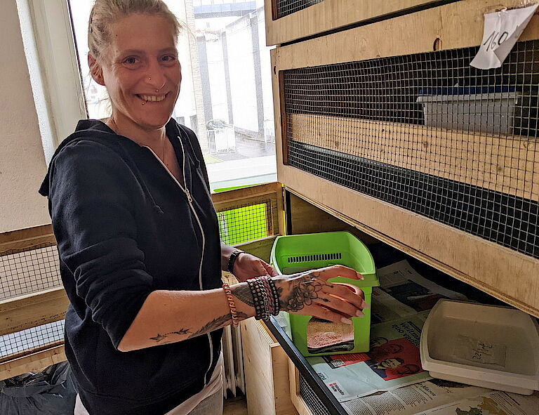 Für Nina Becker bedeutet das jede Menge Arbeit: Von 9 bis 16 Uhr säubert sie wochentags die Gehege der Igel. Denn saubere Zeitungen und Deckchen und frisches Wasser sind wichtig, damit sich keine Krankheiten oder Parasiten vermehren. Ein wenig eintönig sei das manchmal, gibt sie zu – aber es bringt sie ihrem großen Ziel näher: Die 36-Jährige möchte nach mehr als zehn Jahren in der Werkstatt von proviel unbedingt einen festen Job auf dem allgemeinen Arbeitsmarkt finden. Im Praktikum trainiert sie die Zusammenarbeit mit Kollegen, die Ausdauer für lange Arbeitstage und Verantwortung für ihren Aufgabenbereich. Während des Lockdowns war das manchmal schwierig, wenn die Grundschule ihres Sohns plötzlich die Betreuung absagte. Doch Nina Becker lernte, auch solche Herausforderungen zu meistern.