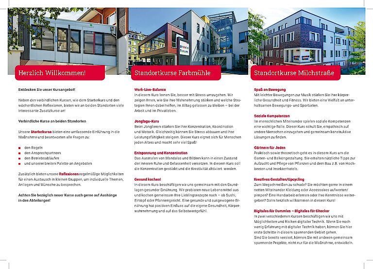 Unsere Starterkurse bieten eine umfassende Einführung in die Maßnahme und beantworten alle Fragen zu den Regeln, den Ansprechpartnern, den Betriebsabläufen und unserer breiten Palette an Angeboten. Diese sind u. a. in den Bereichen Produktionshelfer*in diverse, Produktionshelfer*in Qualitätskontrolle, Montierer/Montagehelfer*in, Montagehelfer*in Automotive, Montagehelfer*in „Elektro“, Helfer*in Verpackung (und Versand), Lagertätigkeiten inklusive Staplerschein, Küchenmitarbeiter*in, Helfer*in Reinigung, Haustechnik inkl. Gartenarbeit, Verkäufer*in Lebensmitteleinzelhandel, Bäckereiverkäufer*in und Badehelfer*in.