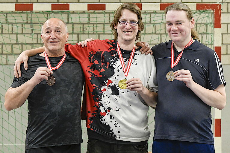 Während zu Beginn vier Tischtennisplatten aufgebaut sind, findet das Finale nur noch an einer Platte statt. So können nun alle den letzten, spannenden Spielen zusehen. Am Ende gehen die Medaillen an Bastian Scholz (1.), Leonard Schulze (2.) und Nihad Kastrati (3.). Bei den Pokalen siegt Kevin Schulze (1.) vor Maxim Ravichev (2.) und René Warm (3.).