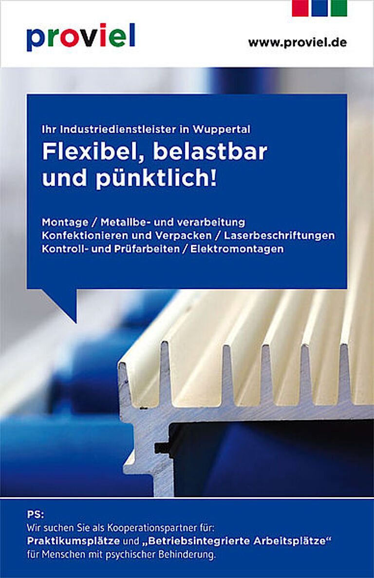 Diverse Zertifizierungen belegen, dass die professionellen Arbeitsergebnisse den Qualitätsanforderungen der Kunden standhalten. Langjährige Kundenbeziehungen beweisen, dass die kontinuierliche Zusammenarbeit und die Anpassungsfähigkeit einen hohen Stellenwert bei dem Wuppertaler Industriedienstleister haben. Die wichtigste Aufgabe sei es dabei, Menschen mit psychischer Behinderung ihren Stärken entsprechend einzusetzen, erläutert Geschäftsführer Christoph Nieder. Durch die Vielfalt der Arbeitsbereiche bieten wir unseren Mitarbeiterinnen und Mitarbeitern die Gelegenheit, sich zu testen und behutsam neuen Herausforderungen zu stellen. Die stetige Begleitung durch Fachpersonal, umfangreiche Kursangebote und die soziale Sorgfalt im Miteinander schaffen Raum für die Entwicklung und Rehabilitation.