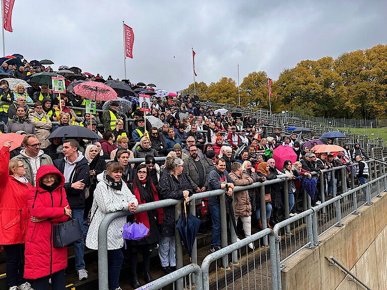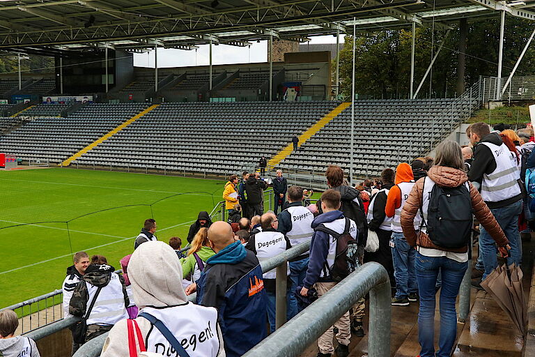 Der Bundestag diskutiert in seinen Haushaltsplanungen für 2025 mal wieder über Einsparungen im Eingliederungstitel der Jobcenter. Heute haben viele betroffene Menschen aus aktuellen Jocenter-Maßnahmen ein starkes Bild „dagegen!“ im Stadion geschossen.