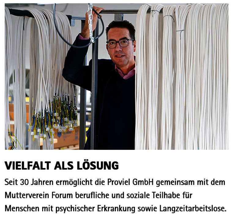 Seit 30 Jahren ermöglicht die proviel GmbH gemeinsam mit dem Mutterverein forum berufliche und soziale Teilhabe für Menschen mit psychischer Erkrankung sowie Langzeitarbeitslose. Das Unternehmen ist in der Wirtschaft gefragt und fester Teil der Wuppertaler Stadtgesellschaft.