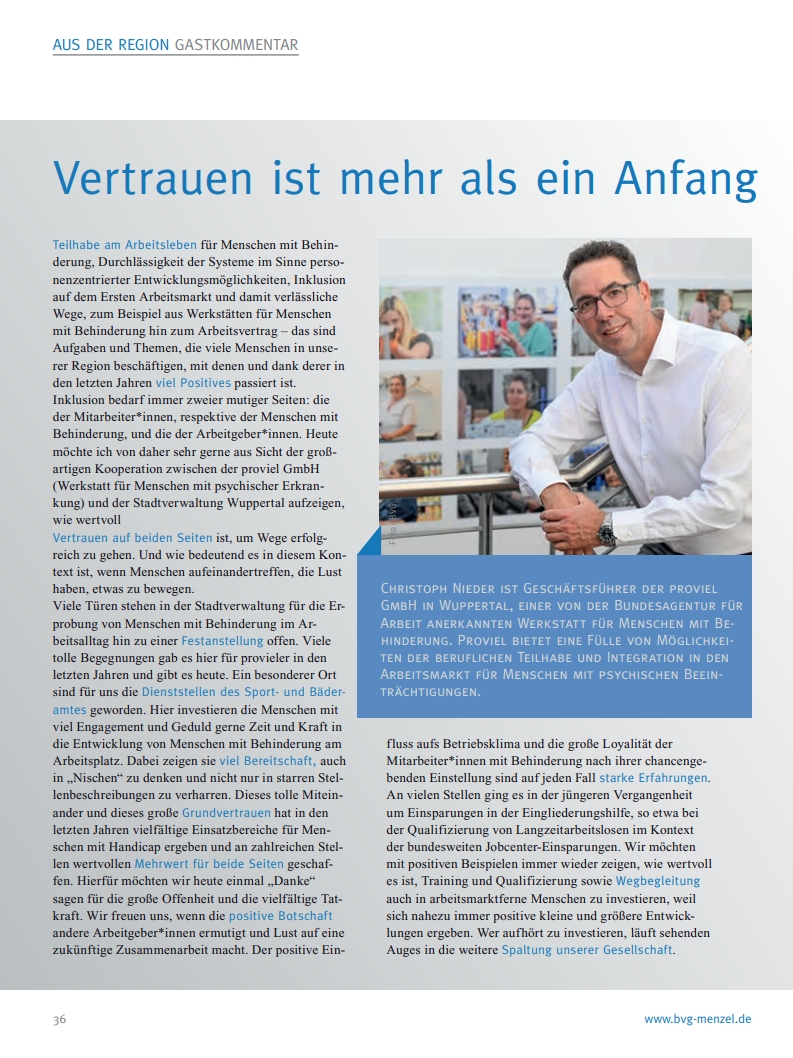 Bericht über Teilqualifizierungen bei proviel im Magazin bergische Wirtschaft mehr