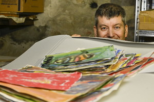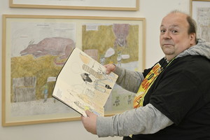 Verschiedenste Techniken, Materialien und Motive verarbeiten die provieler in ihren Werken. Wolfgang Weyh malt jedesmal „einfach drauflos“, mal mit Wachskreide, mal mit Acrylfarben. Herausgekommen sind faszinierende Motive, bei denen etwa eine Waldfee aus einem Gebüsch auftaucht. Markus Luthardt zeichnet kleinteilige Szenen wie zwei Goblinganoven, die einem Feuerwurm sein Gold stehlen wollen. „Die vielen Münzen waren eine ganz schöne Arbeit“, berichtet er.