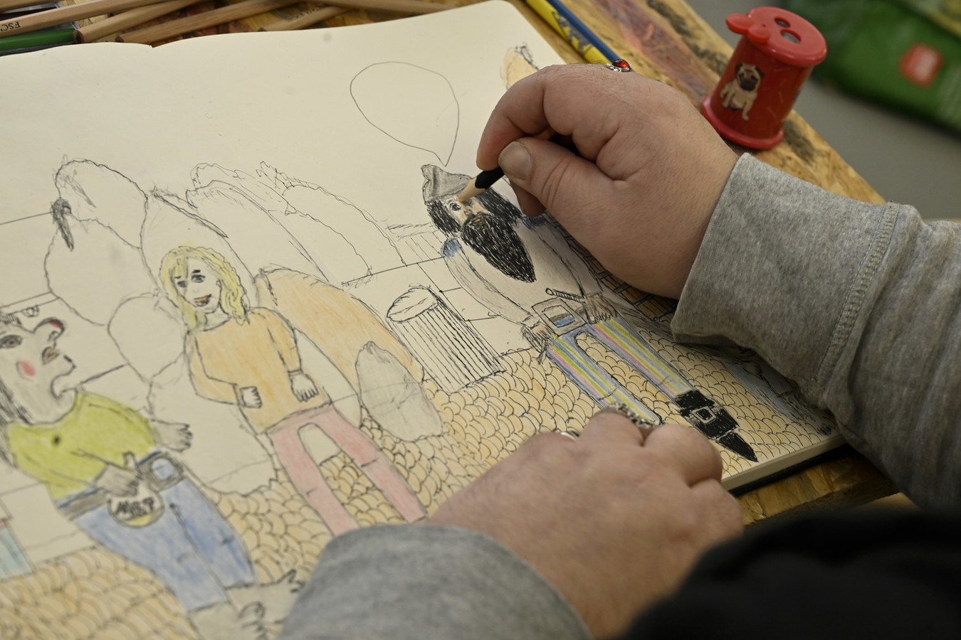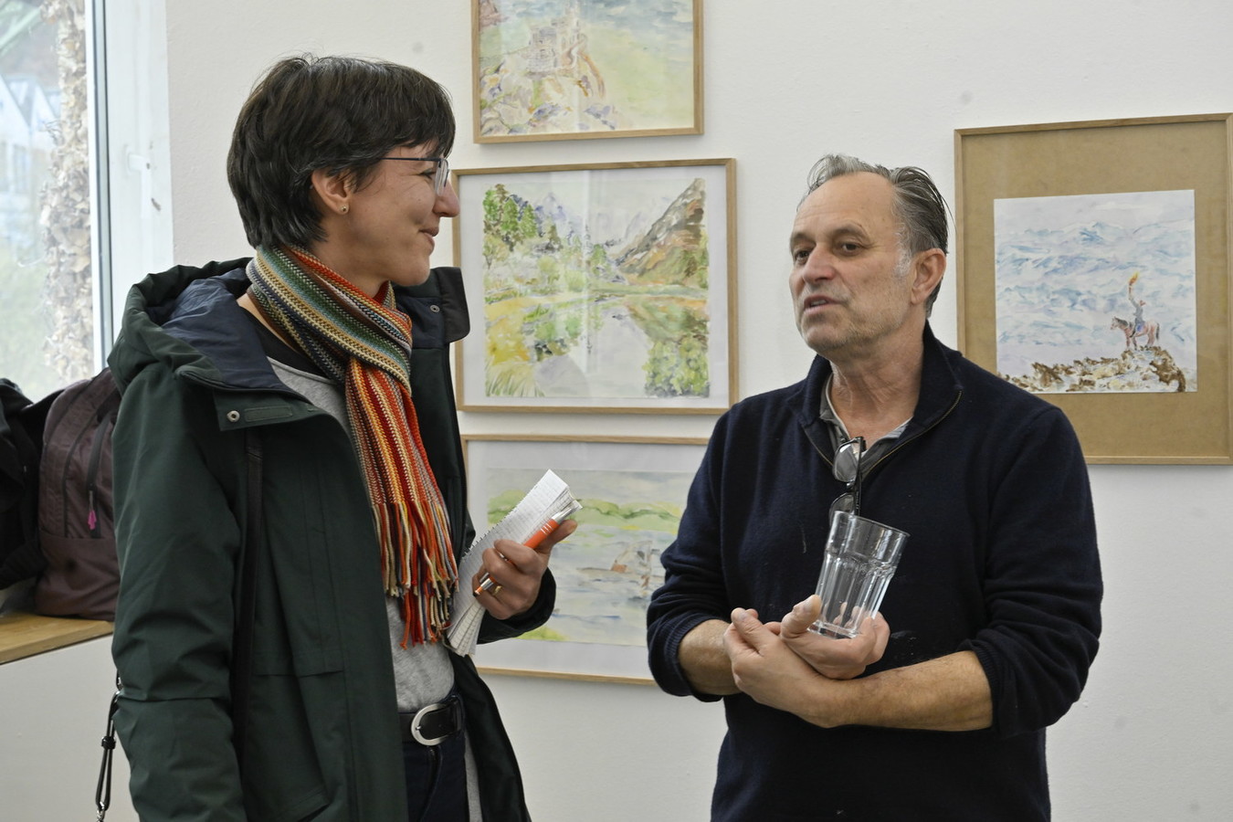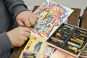 Anja Friedrichs schätzt besondere Stifte, die eine breite und schmale Kante haben: „Da kann man wunderbar schnell etwas erreichen, das macht Spaß.“ In ihren Werken schmelzen Eiswürfel dahin oder eine Kaffeetasse erinnert an gemütliche Kaffeestunden. Auch Paul Münzer ist stolz auf das Feedback der Ausstellungseröffnung: „Vielen haben meine Bilder gefallen – das motiviert mich. Es war schon mein Kindheitstraum, Künstler zu werden.“