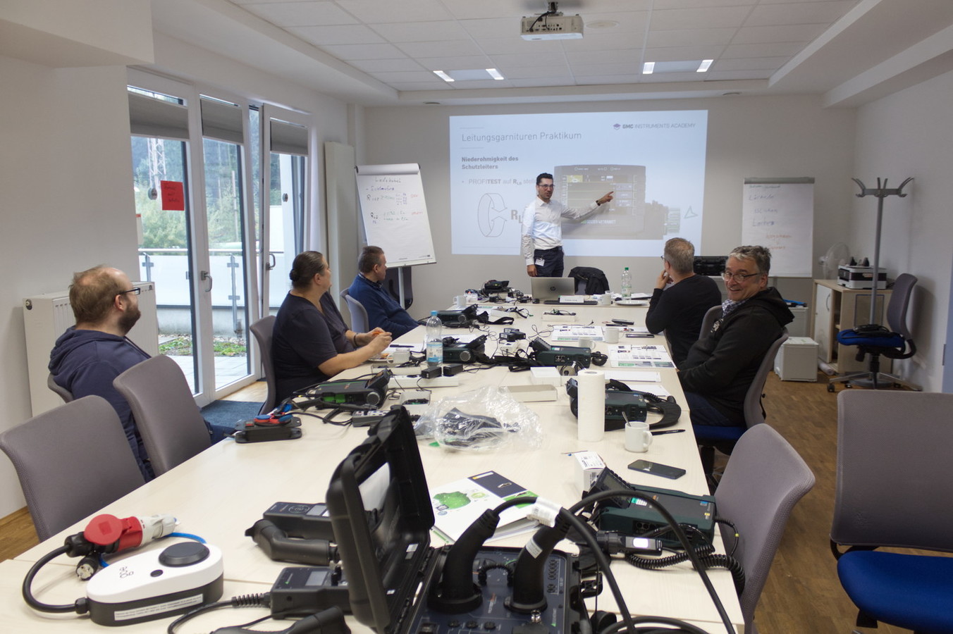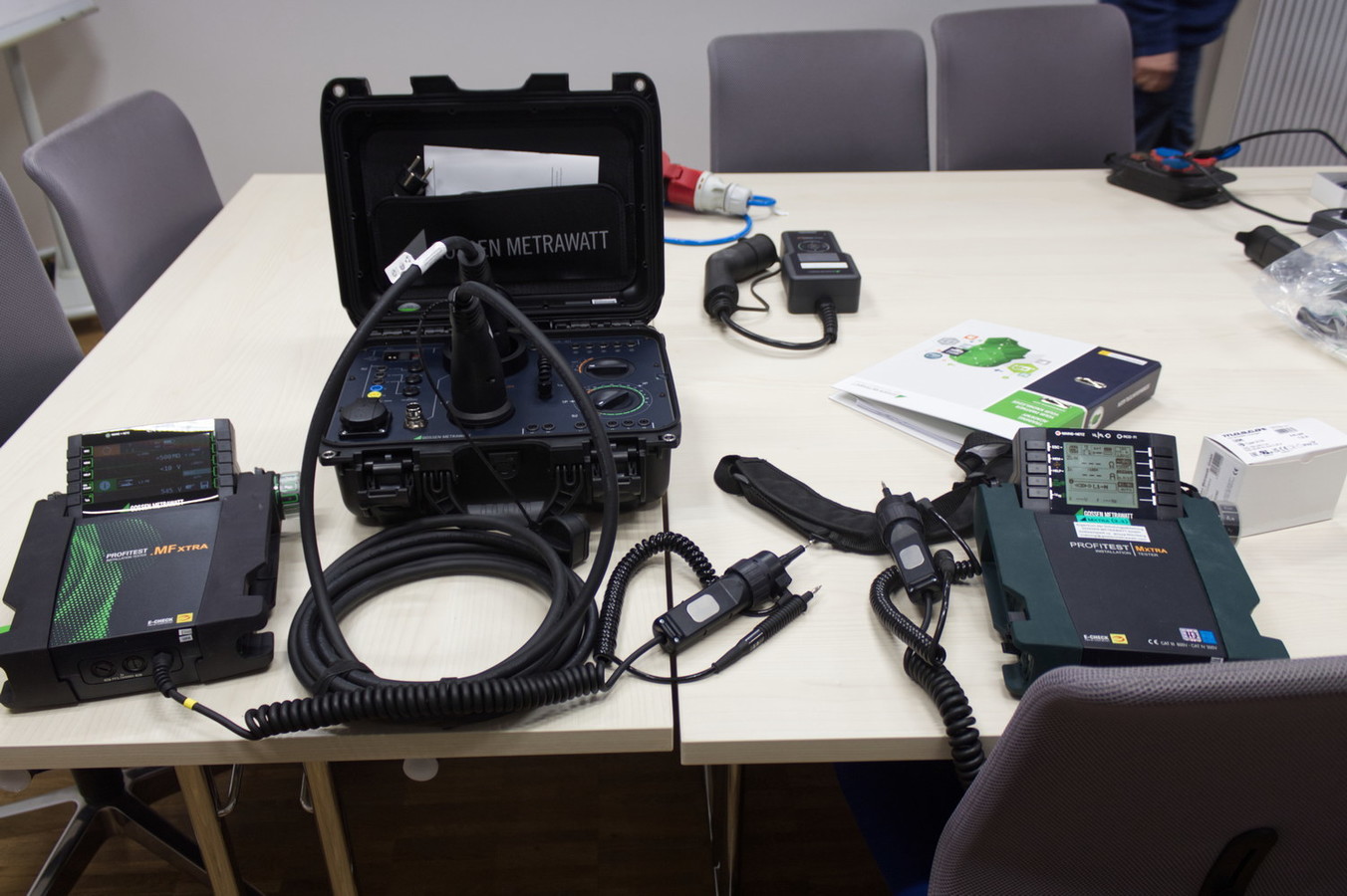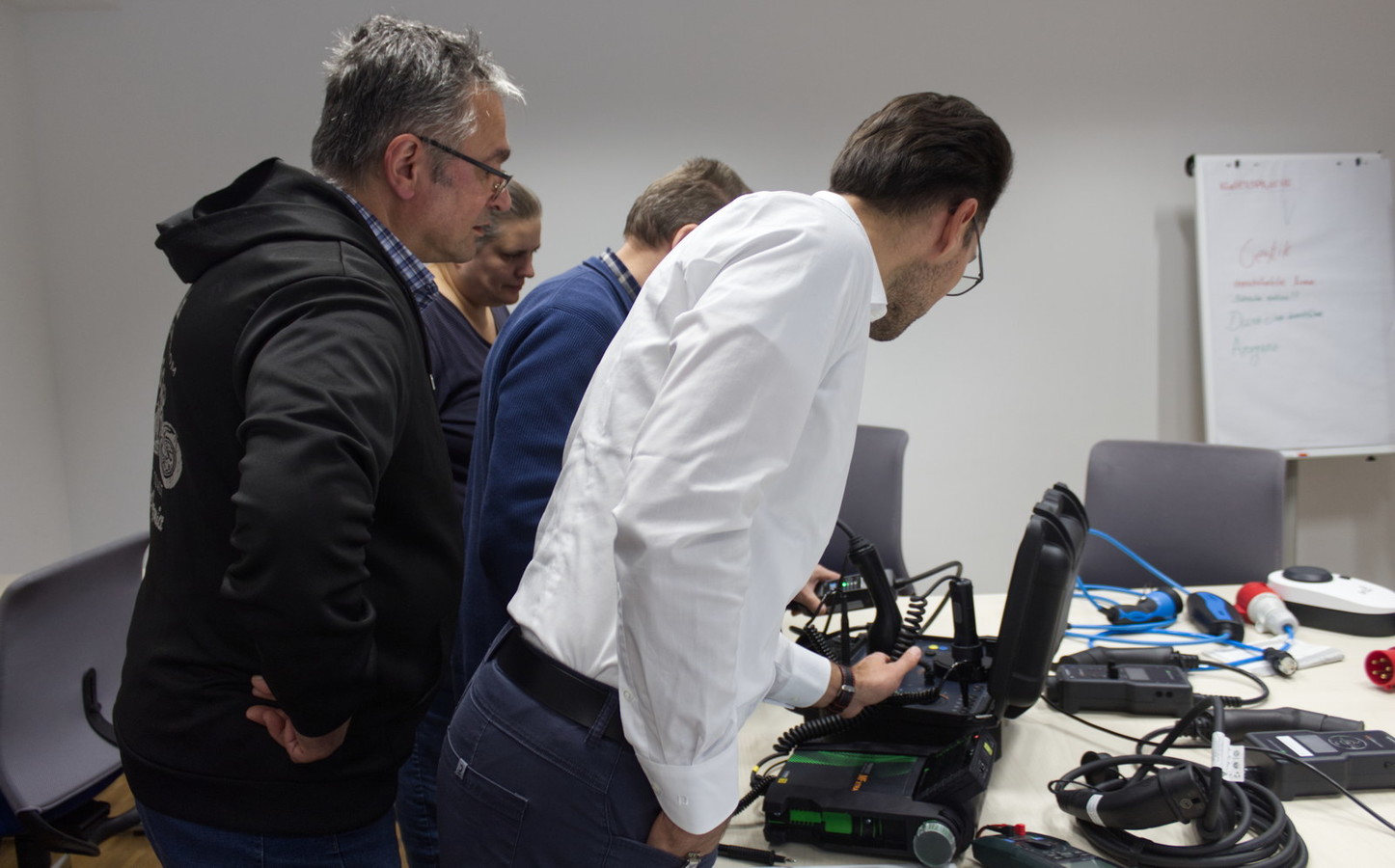 Um diese Ladestationen zu prüfen, hat ein Teil der E-Checker Gruppe aktuell eine 2-tägige Schulung der Firma Gossen Metrawatt in unserem Hause mitgemacht. Es wurde viel gelernt über die Hintergründe der E-Mobilität, die damit verbundenen Risiken, Verpflichtungen und Gesetze, um den Umgang mit den Ladestationen so sicher wie möglich zu gestalten. Neben der Theorie wurden auch viele praktische Übungen durchgeführt. Hier wurden im Besonderen die möglichen Schwierigkeiten beim Messen der verschiedenen Ladekabel aufgezeigt. Letztendlich wurde zu Übungszwecken noch eine Ladestation im eigenen Hause durchgeprüft.